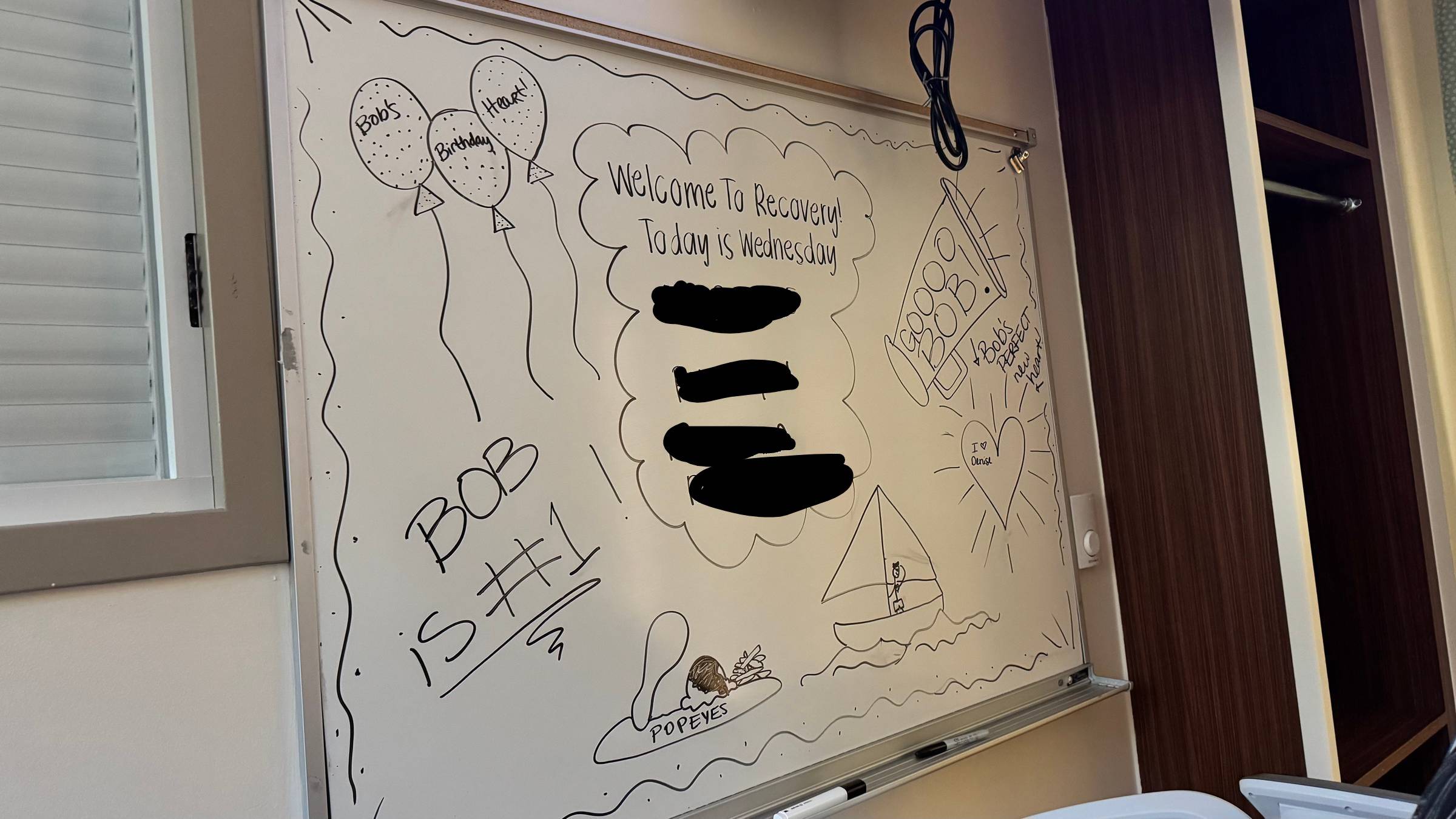 In fact, after my FIL's surgery, I decorated his whole ICU board with encouraging little drawings and made a dolphin/palm tree/beach scene on his heart pillow (which he loved, as did all of the hospital staff!).